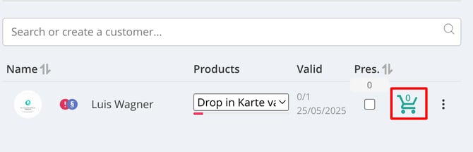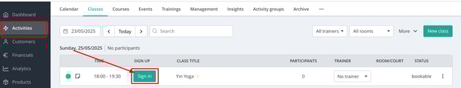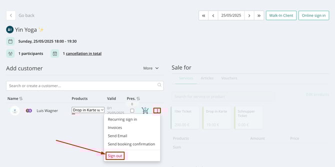 Note: Once a customer is signed in - regardless of being marked as present - the booking is deducted from their selected product.