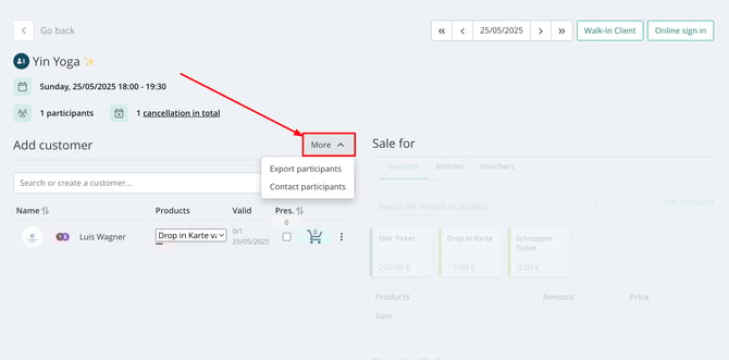 Before the class starts, confirm participant attendance by ticking the checkbox next to each attendee’s name. This helps you track attendance and possible no-shows in both the activity reports and the customer profiles.