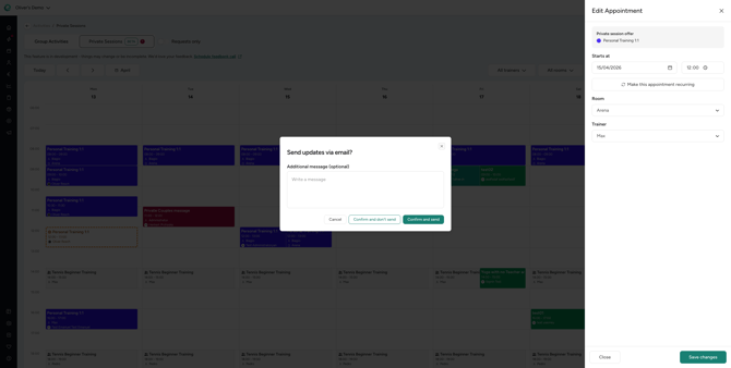 Upon saving, you are asked if you want to send out the updated appointment info to the customer and can also add some additional info that will be included in the email. Depending on your choice, an email will be sent out.