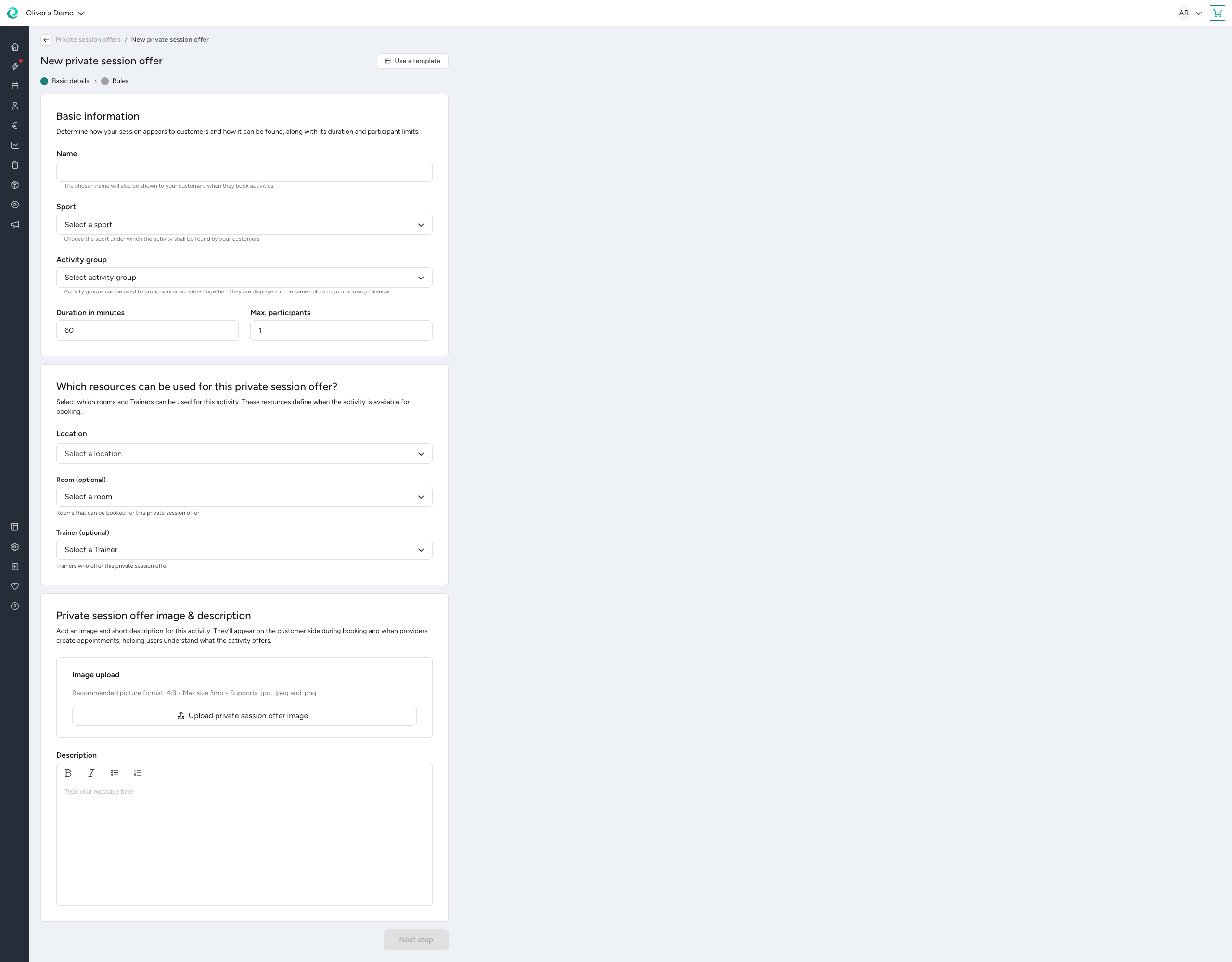When you navigate to Activities you can find a new tab called "Private session offers". There you can create all the different private sessions that you want to schedule appointments for.