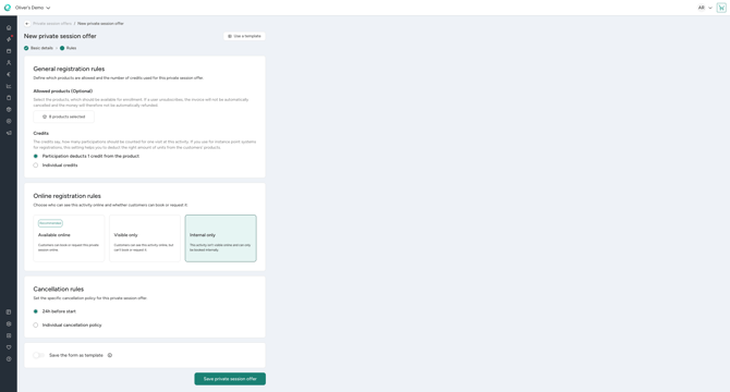 - If you want to reuse this private session offer as template to quickly create other new offers.