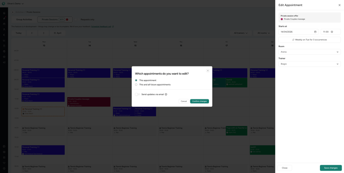 You can revise the date and time, recurrence options and potentially have to assign required resources such as rooms or teachers if the private session offer dictates having them.