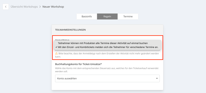 - Tickets: Erstelle spezielle Tickets (Einzeltickets oder Kombitickets), die nur für diese Aktivität gelten.