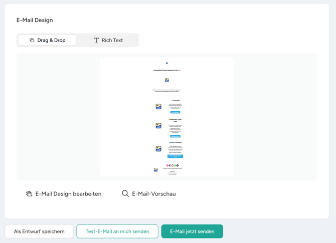 - in der E-Mail Vorschau prüfen oder eine Test-E-Mail an dich selbst senden, um nachzuvollziehen, was die Empfänger:innen deiner Nachricht sehen würden.