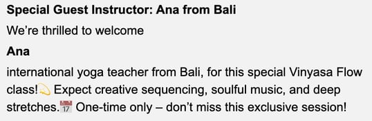 Hebe saisonale Angebote hervor - z.B. Christmas Yoga Flow oder Neujahrs-Detox-Klasse, um mehr Aufmerksamkeit und Buchungen zu erzielen.