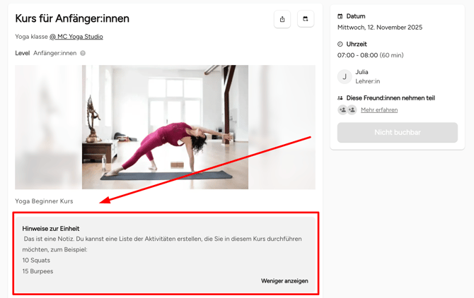 Wie man Notizen zu Kurseinheiten hinzufügt (z. B. Workout des Tages)