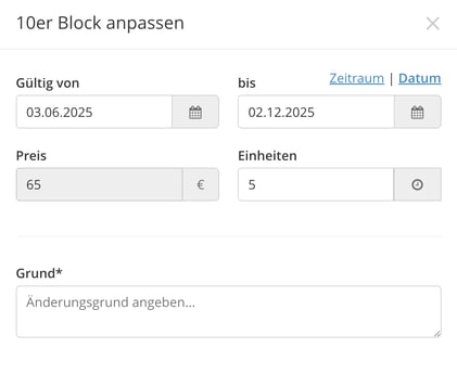 Jetzt kannst du den Zeitraum wieder verlängern und die Zeit hinzufügen, auf die die/der Kundin(Kunde noch Anspruch hat.