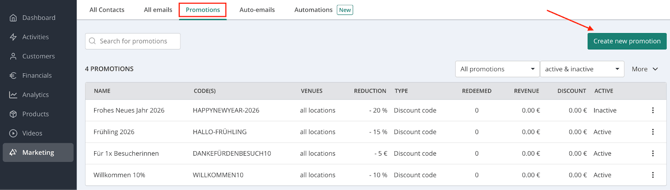 Studios can send discount codes free of charge or distribute them to customers at the studio.