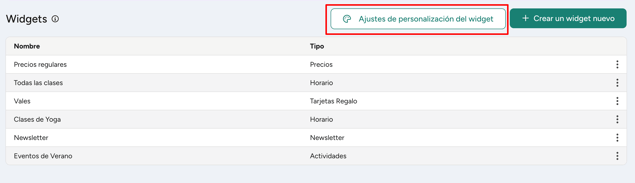 - Haga clic en el botón Ajustes de personalización del widget en la parte superior de la página.
