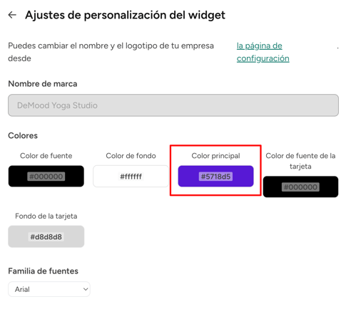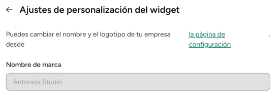 La configuración de la marca de tu widget define cómo aparece tu estudio o marca en todas las páginas relacionadas con el widget que ven tus clientes.