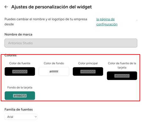 - No es necesario añadir ni gestionar estos detalles por separado en la configuración de marca, pero puedes optar por actualizarlos y se reflejarán también en tus widgets.