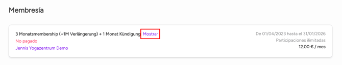 Importante: Esta opción solo está disponible si la membresía fue adquirida en línea. Si la compraste directamente en un estudio, debes contactarlos directamente.