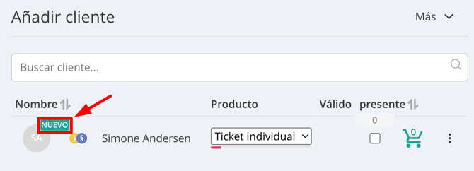 Nueva visualización de clientes nuevos en la lista de asistencia