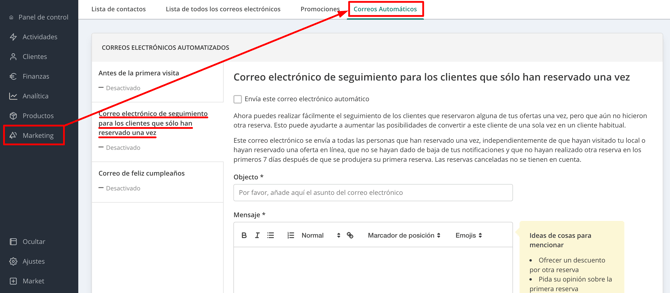 Ahora puedes enviar correos después de la visita, no solo después de la reserva.