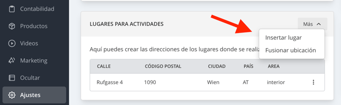 Actividades y vídeos: Se gestionan de forma separada por ubicación.