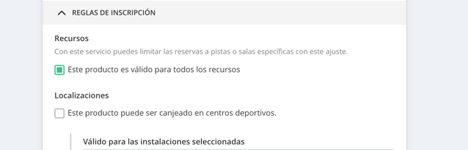 Servicios: Las tarjetas de tiempo o clase pueden habilitarse en ubicaciones específicas.
