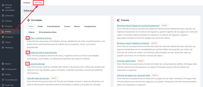 Navega a Finanzas > Informes en tu Manager