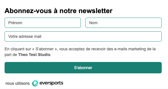 💡 Note : Le widget Newsletter est gratuit pour tous les prestataires. Cependant, il fonctionne de manière optimale lorsqu’il est utilisé avec l’outil de Communication Eversports pour envoyer des newsletters et gérer votre audience.