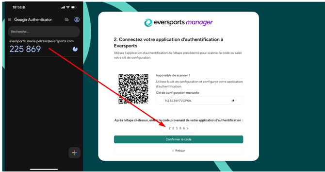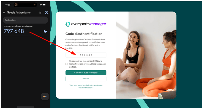 2. Connecter l’application d’authentification à Eversports
