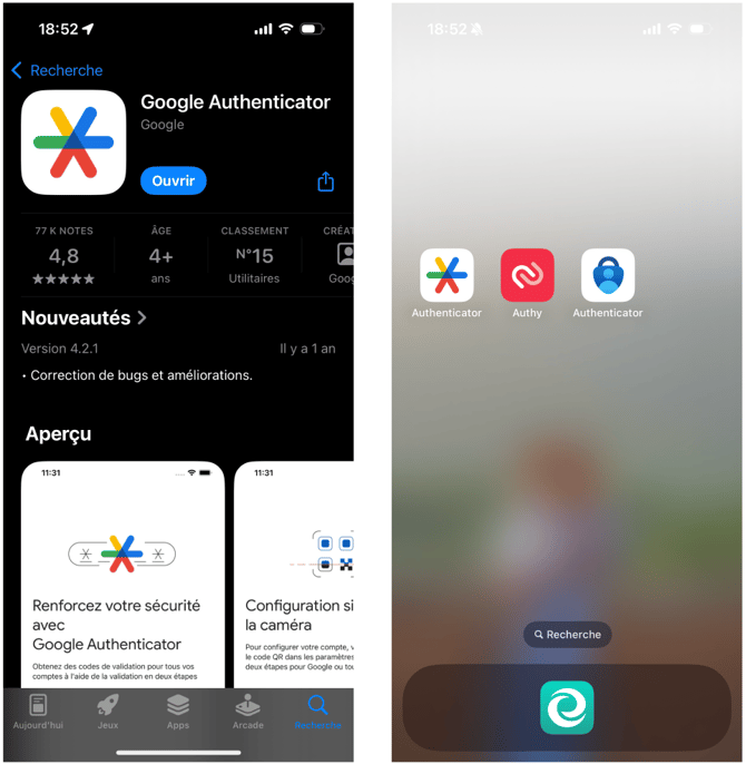 - Téléchargez l’application d’authentification de votre choix (par ex. Google Authenticator, Microsoft Authenticator ou Authy).