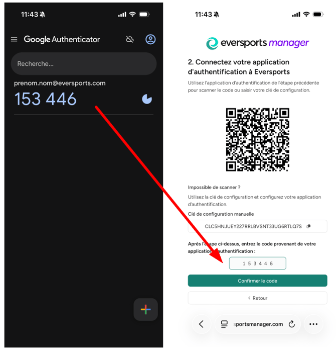 - Copiez le code à 6 chiffres affiché dans l’application d’authentification.