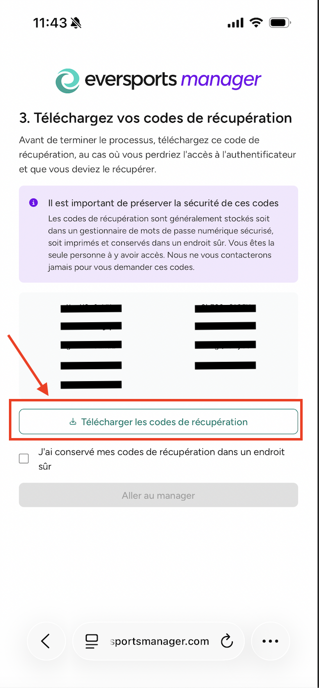 👉 Vous en aurez besoin si vous perdez votre appareil mobile ou si vous souhaitez configurer la 2FA sur un nouvel appareil.