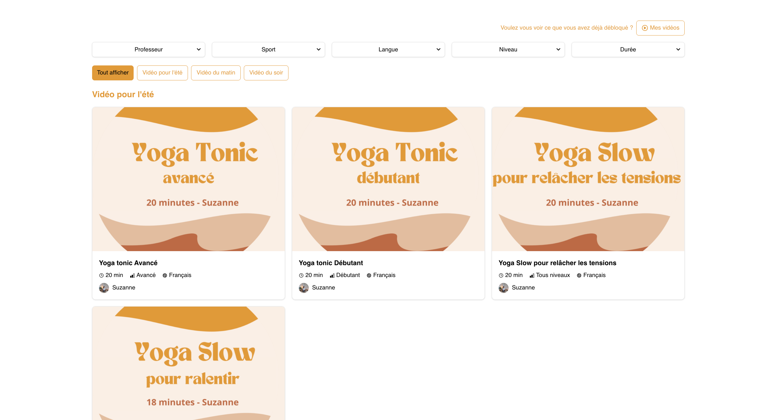 Si vous achetez un pack de vidéos (ex. Cours de yoga partie 1, partie 2 et partie 3), vous devrez débloquer chacune des parties séparément dans la vidéothèque du studio. Une fois fait, toutes les parties apparaîtront dans votre section Mes vidéos.