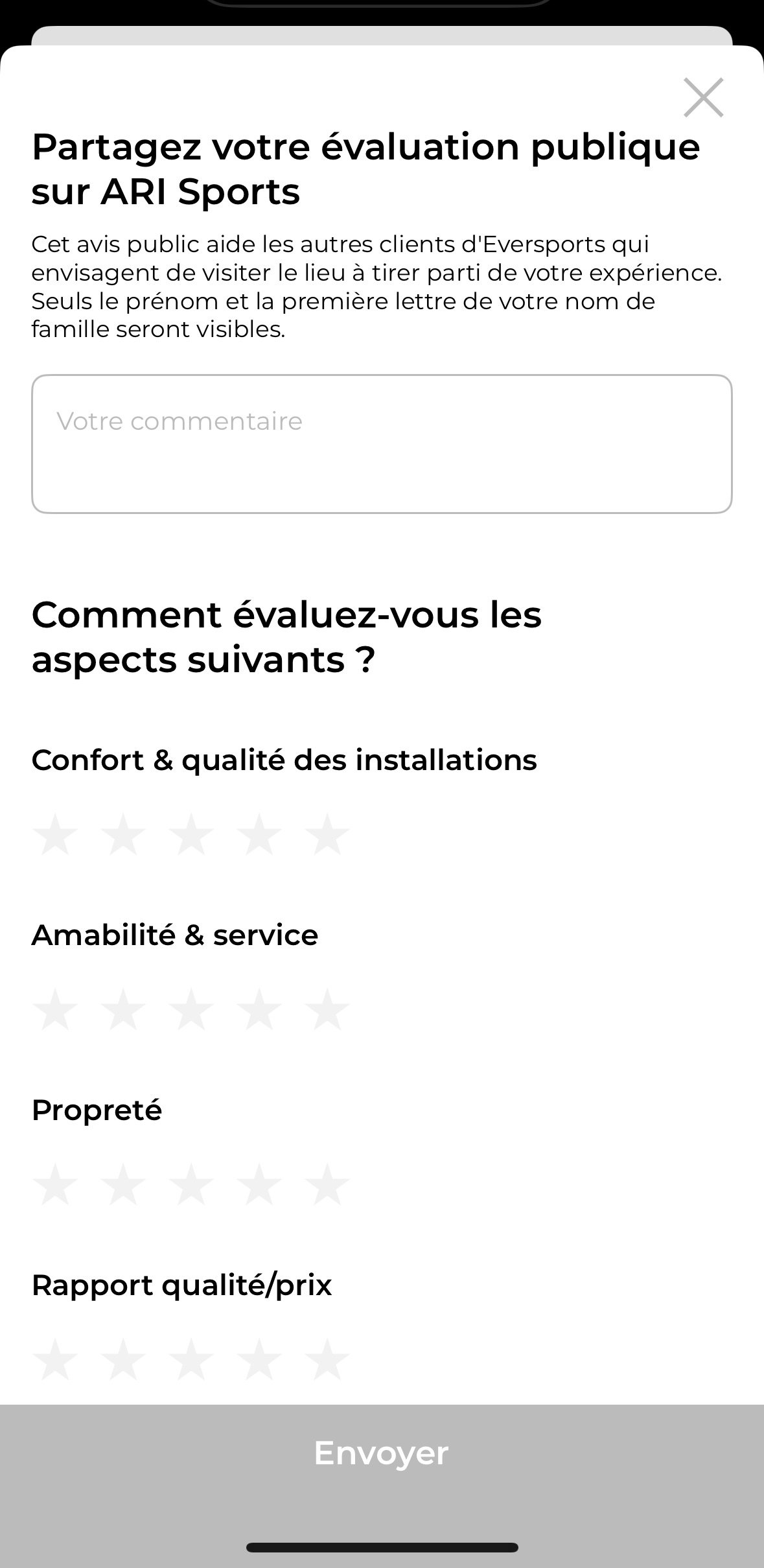 Lorsque vous avez participé pour la première fois à une activité dans un studio, l'application Eversports vous permet de laisser deux avis: