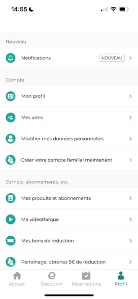 - Retrouver vos notifications, votre profil, vos ami·e·s (lisez ici comment vous connecter avec vos ami·e·s sur Eversports) et gérer votre compte famille.