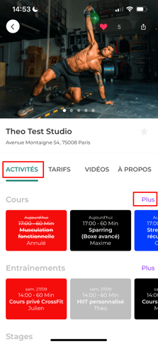 Si vous souhaitez réserver une activité dans votre studio, vous pouvez rechercher le nom du studio et choisir dans son planning le cours que vous souhaitez réserver.