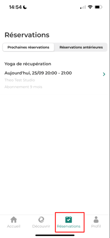 Toutes vos activités réservées se trouvent dans votre compte Eversports, sous Réservations > Réservations à venir.