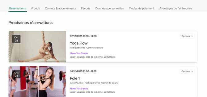 🏦 Si le mode de paiement de votre abonnement est le prélèvement SEPA en ligne automatisé, veuillez contacter directement le studio pour modifier votre IBAN.