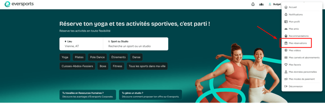 Connectez-vous à votre compte Eversports depuis le site web eversports.fr ou l’application Eversports.