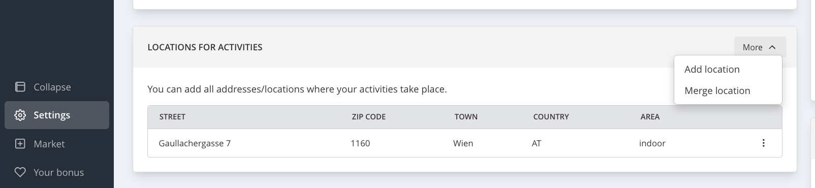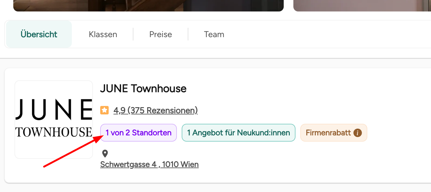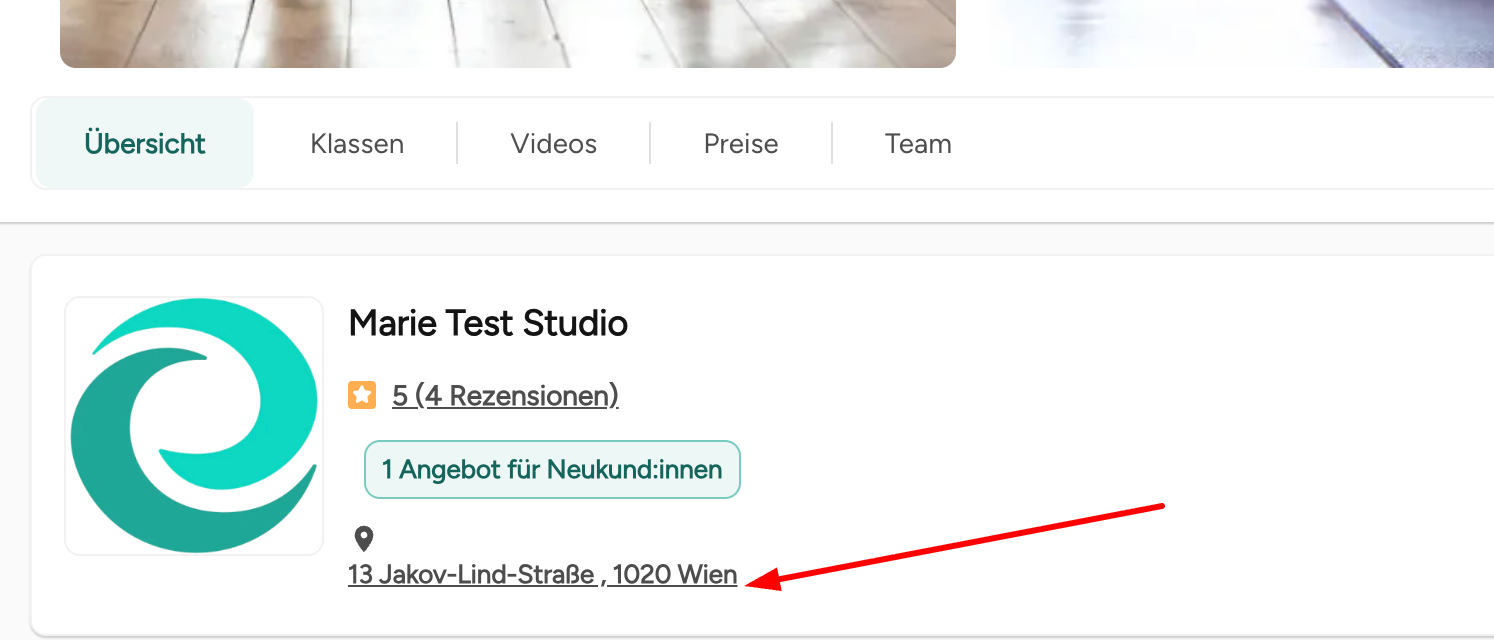 Studio Profile: Only one profile and address are displayed in the Eversports App and Marketplace.