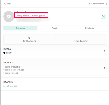 When a customer then enters the booking process, s/he will receive the info for which family member they are booking. S/he could also change the family member as well, directly in the process.