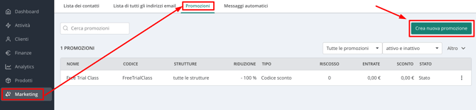 1. Vai su Marketing > Promozioni in Eversports Manager