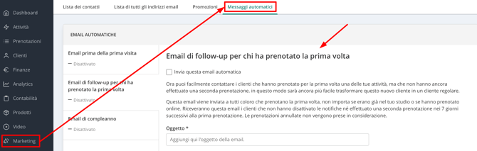 Puoi usare le email automatiche già disponibili in Eversports Manager (menu Marketing > Email automatiche o le email automatiche nei settaggi dei prodotti) per promuovere il tuo programma referral.