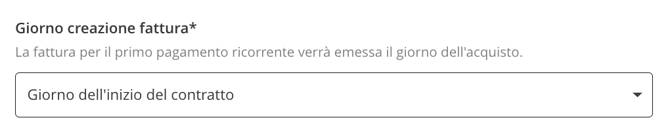 - Data di scadenza della fattura: imposta su Data di inizio abbonamento per allineare i cicli di fatturazione.
