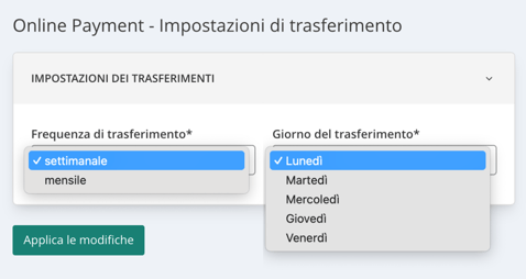 Cliccando su Modifica impostazioni bonifico, puoi scegliere:
