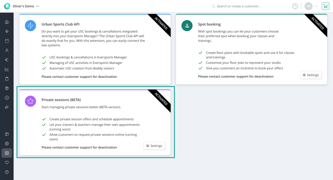 - Scheduling private sessions on B2B side - currently, you can manage private sessions via the Eversports Manager. There is no booking request or direct booking possible yet for your customers via the widget or apps.