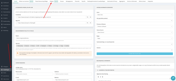 Zorg ervoor dat je minstens één widget hebt aangemaakt (bijv. rooster, prijzen, activiteiten, video’s of vouchers)