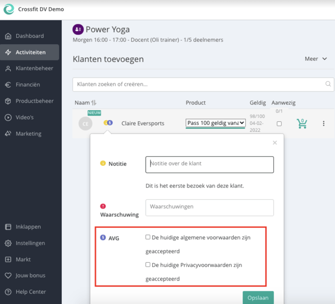 Zodra je hebt opgeslagen, zijn je algemene voorwaarden beschikbaar tijdens het online boekingsproces van klanten en bij registraties via de widgets.