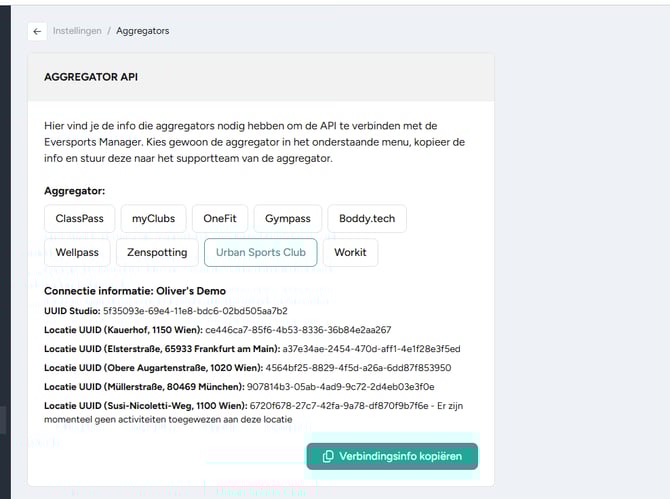 Neem contact op met het Urban Sports Club API-supportteam om de koppeling te voltooien.