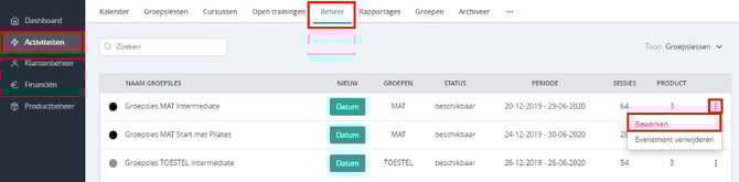 Het product “Urban Sports Club API” wordt automatisch toegewezen en kan niet handmatig uit de activiteit worden verwijderd.