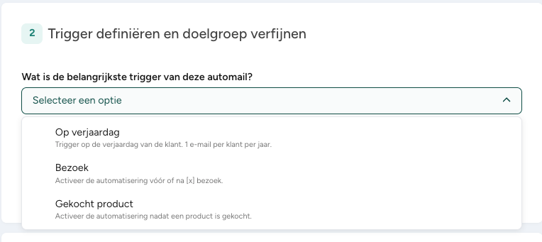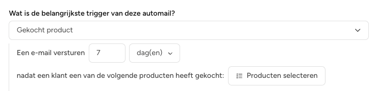 Door meerdere e-mails te combineren (bijv. “1 dag na aankoop,” “7 dagen na aankoop,” “14 dagen na aankoop”), kun je complete communicatiereeksen creëren, ook wel customer journeys genoemd.