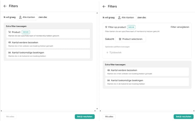 De Product Aankoop Filter is een krachtige nieuwe functie waarmee je klanten kunt identificeren en segmenteren op basis van hun aankoopgeschiedenis. Of je nu memberships wilt upgraden, exclusieve kortingen wilt aanbieden of communicatie wilt personaliseren, deze filter helpt je om de juiste doelgroep op het juiste moment te bereiken.