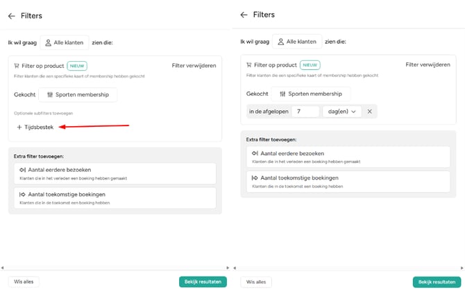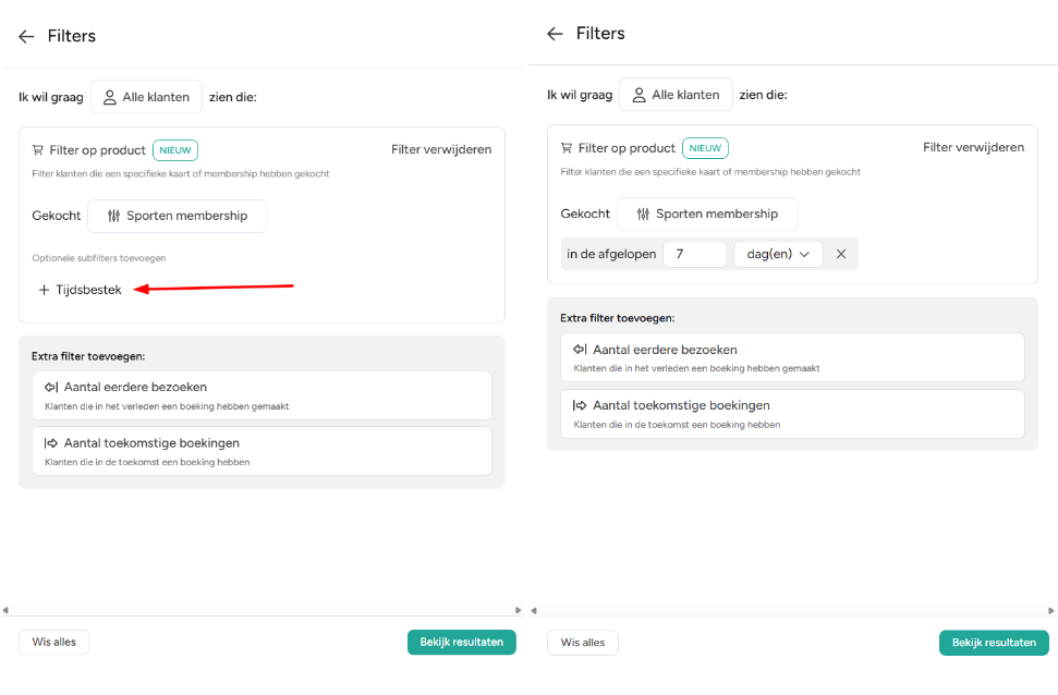 Bijvoorbeeld: klanten met een proefles, maar zonder membership én zonder boeking in de afgelopen 30 dagen. Op die manier bereik je precies de mensen die echt een herinnering of een speciaal aanbod verdienen!