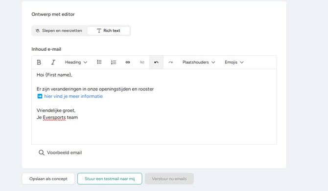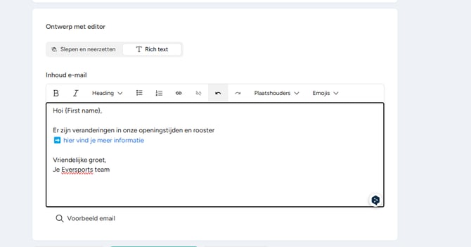 Tip: E-mails met platte tekst worden meestal sneller geopend omdat ze als belangrijker worden ervaren. Vooral voor belangrijke studio-updates en informatie is het een voordeel als je lezers zich kunnen concentreren op de inhoud zonder te worden afgeleid door afbeeldingen of een uitgebreid ontwerp.