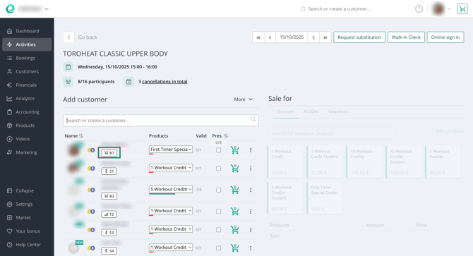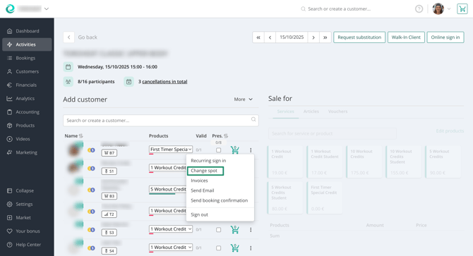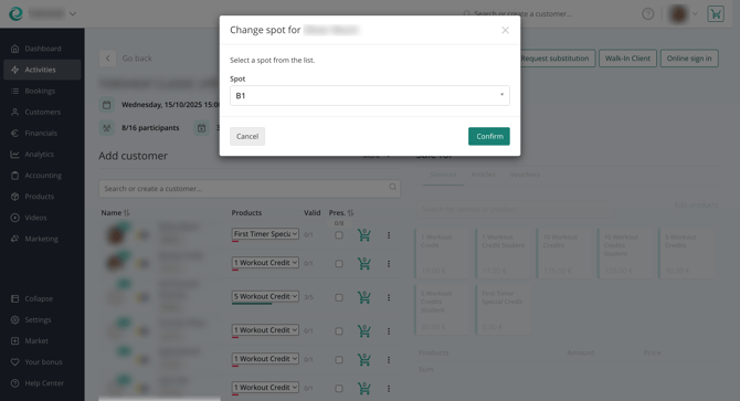When the customers are checking in, your teaching staff can see the spot that is assigned to each customer. Remind them on the spot they have booked when they come in to avoid confusion.