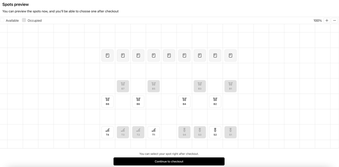 When they complete the booking, a spot will be assigned to them automatically. However, they can immediately modify their spot after the booking has been completed in case they want a specific one.